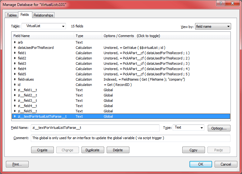 ExecuteSQL ( “Select ” & VirtualList::zi__field1__t & “, ” & VirtualList::zi__field2__t & “,” & VirtualList::zi__field3__t & “,” & VirtualList::zi__field4__t & “,” & VirtualList::zi__field5__t & ” from company”; “|”; “”)